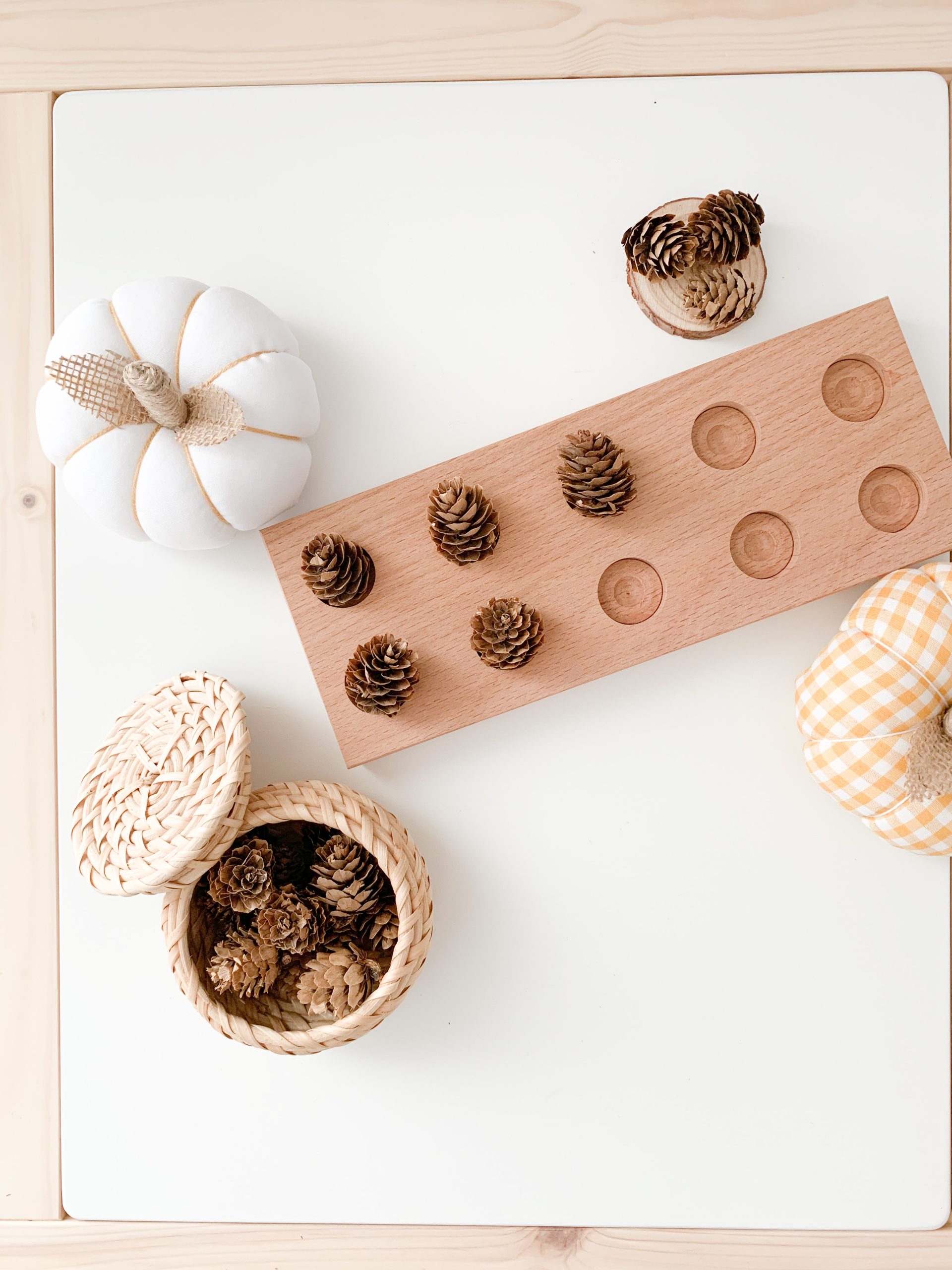 Don’t want to invest in a wooden ten-frame? You can use an egg carton (with 10 spots) instead or draw your own ten-frame on a piece of paper.