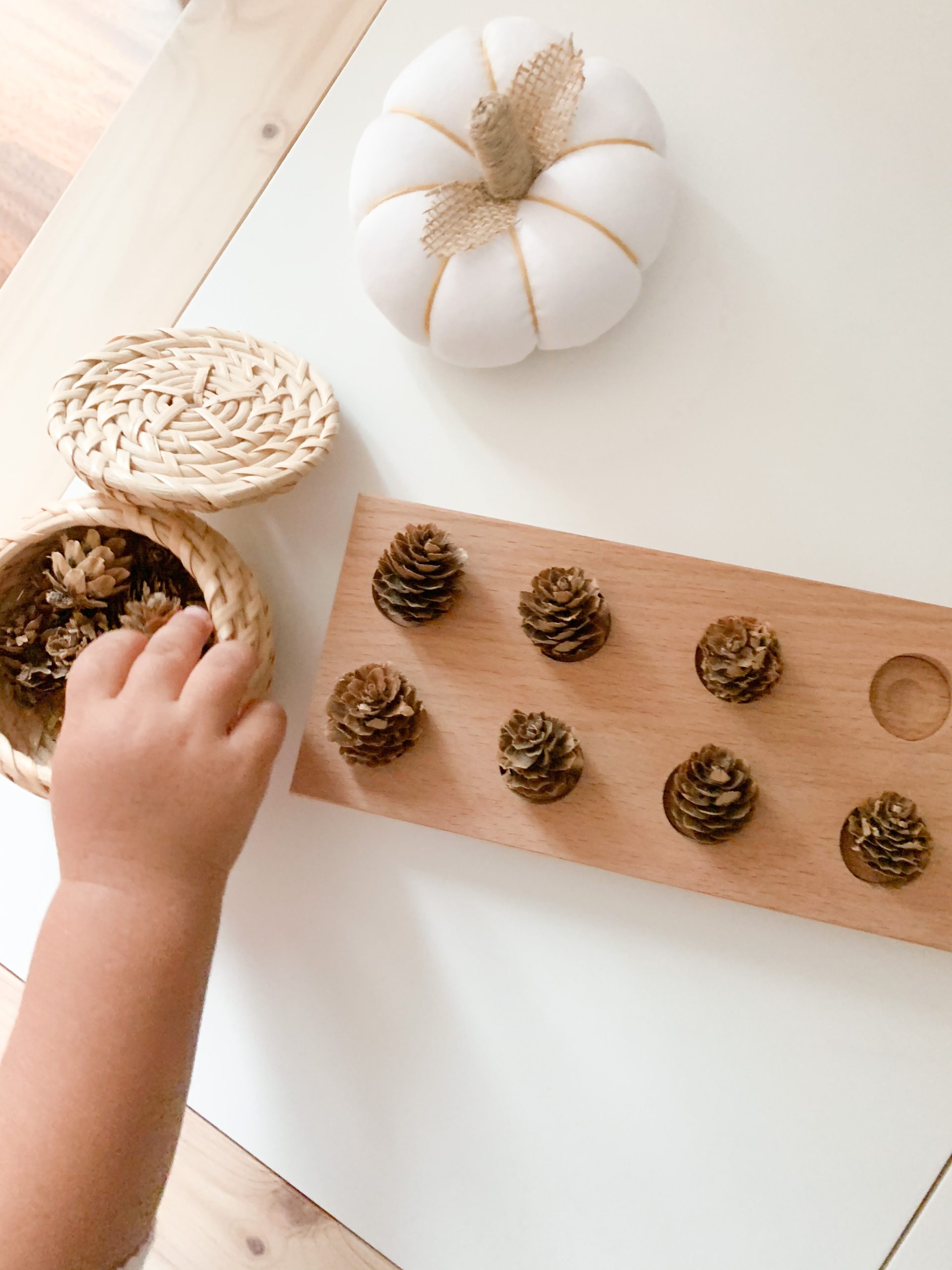 When my daughter was around 18 months old I introduced this ten-frame activity. It was the very first step in our learning to count journey.