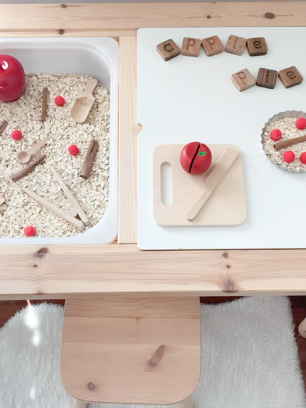 Be sure to extend this work to your kitchen and invite your little one to bake a real apple pie with you!