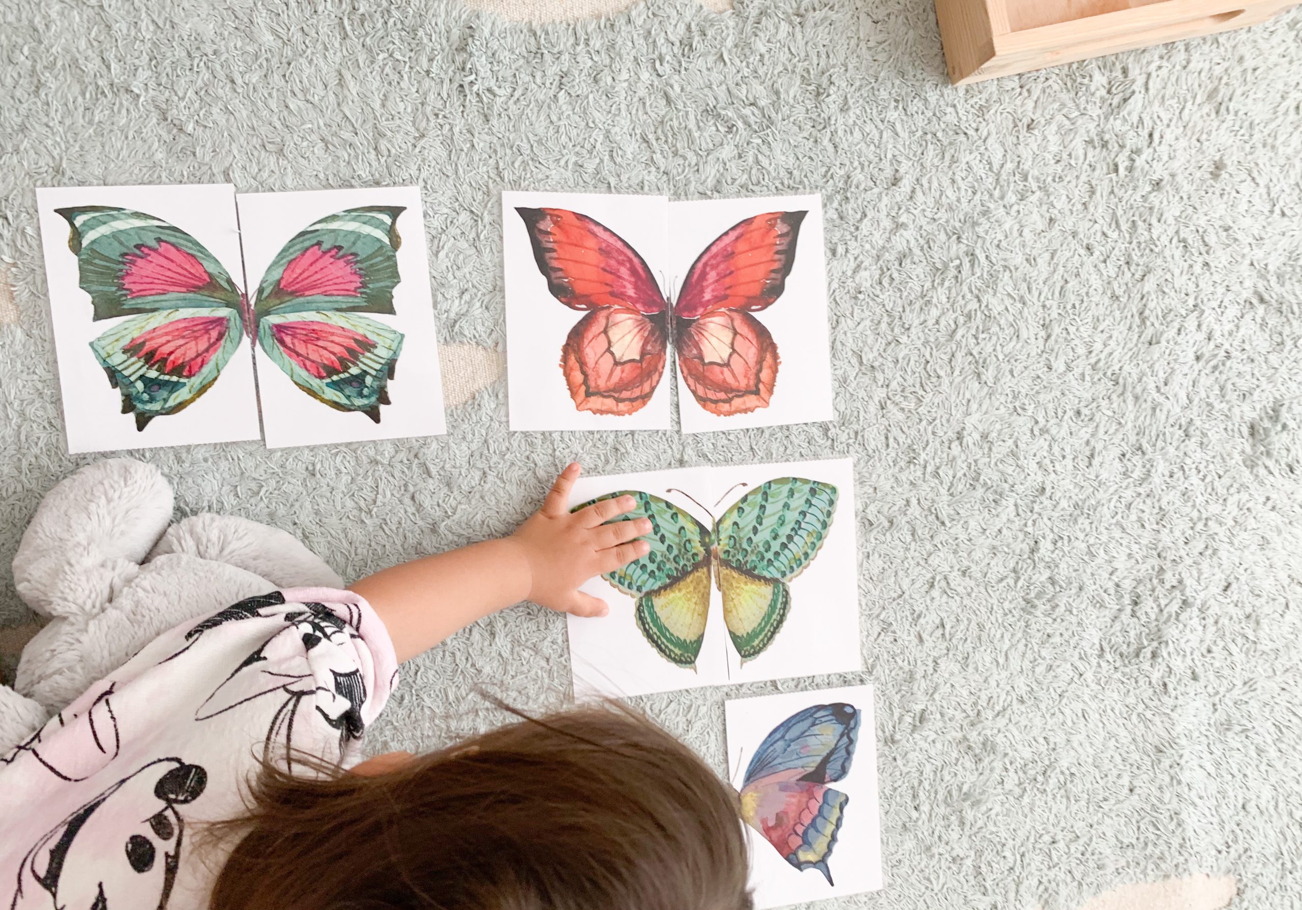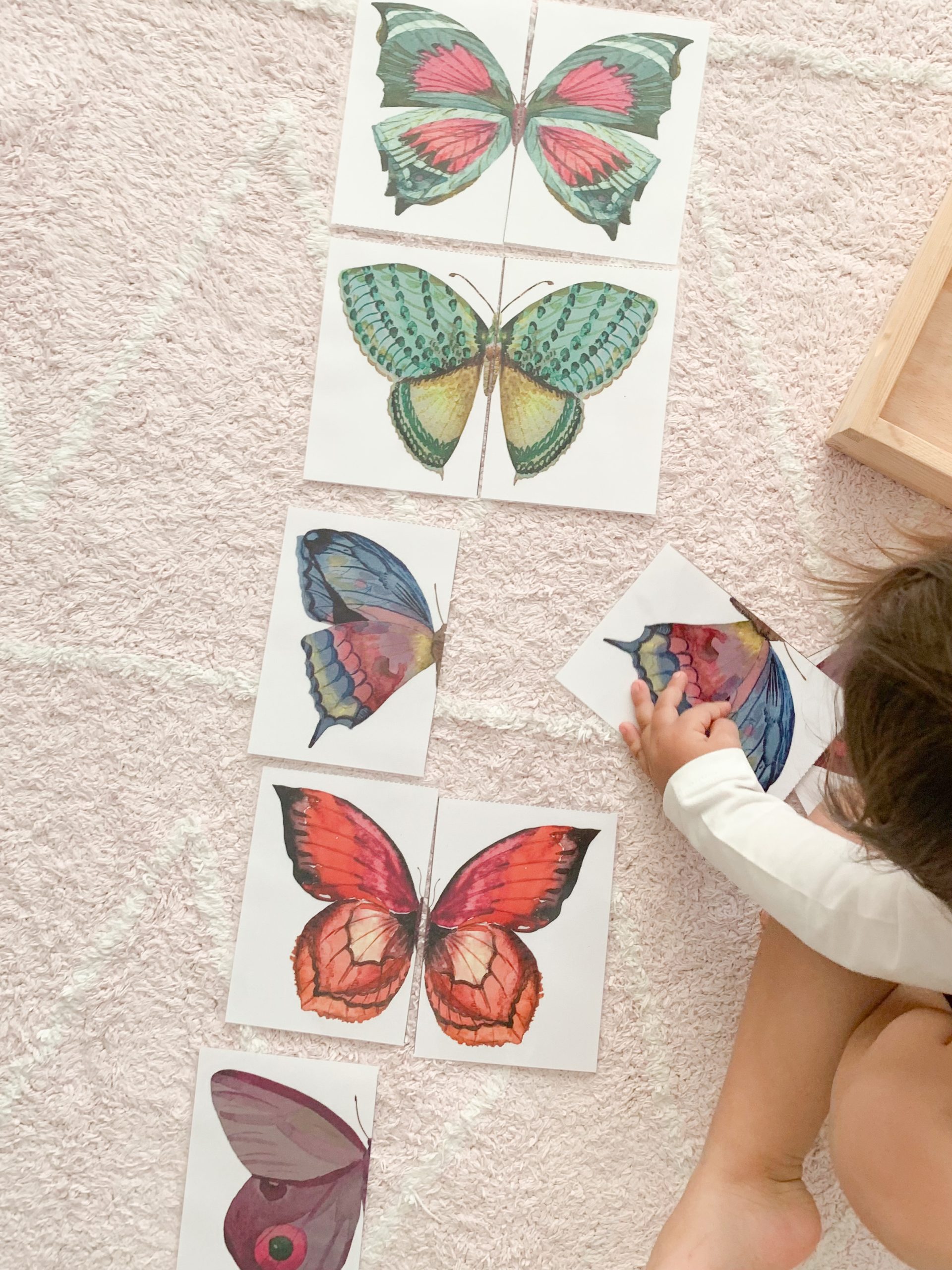This activity was so popular with my little one at two years old! The butterflies images are a free printable by Seashell Education and they are just gorgeous!