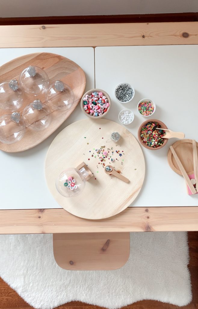 It’s super easy to set up and your little one(s) will have a great time filling up the baubles with any filler you prefer.