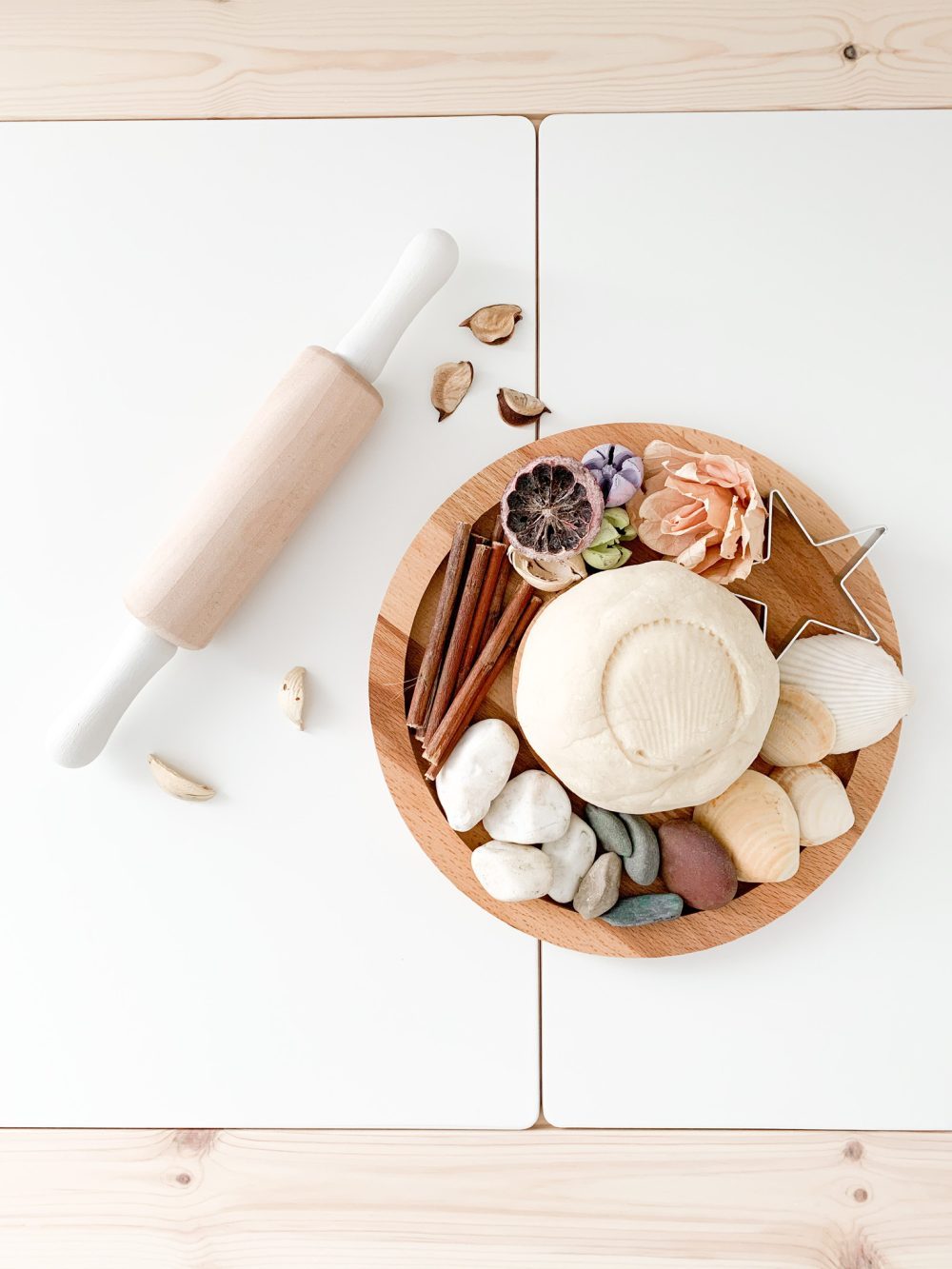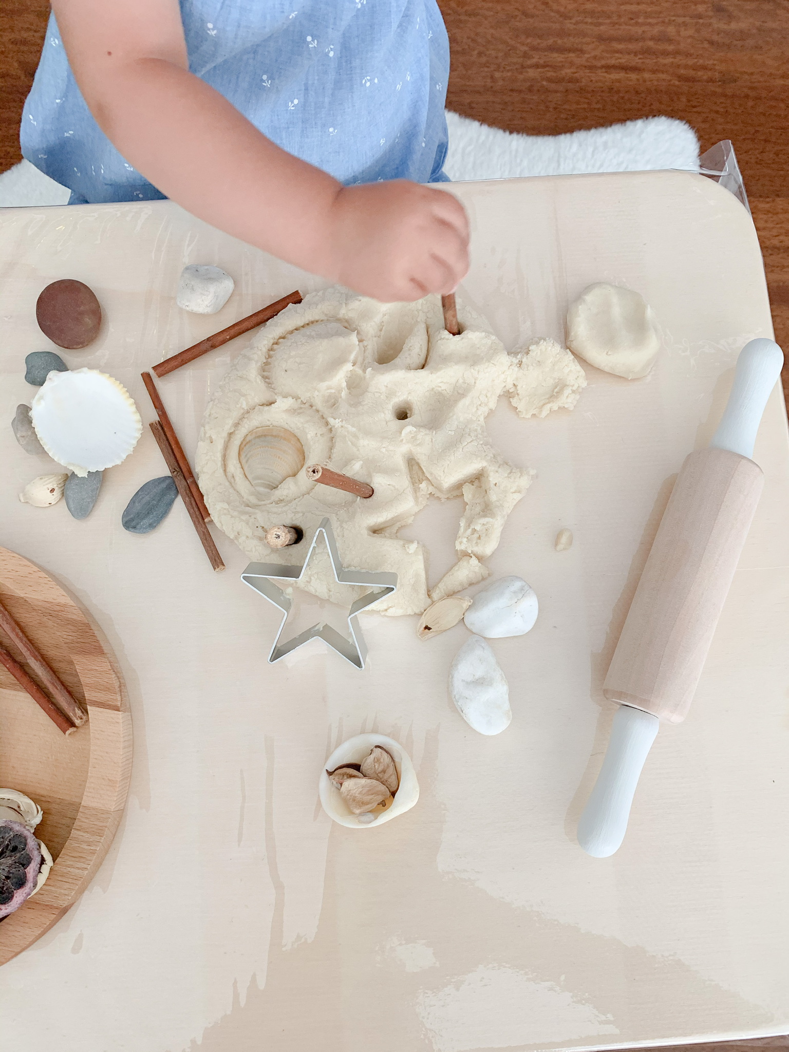 She especially enjoyed rolling the dough, poking it and using the sticks and shells to make holes and shapes.