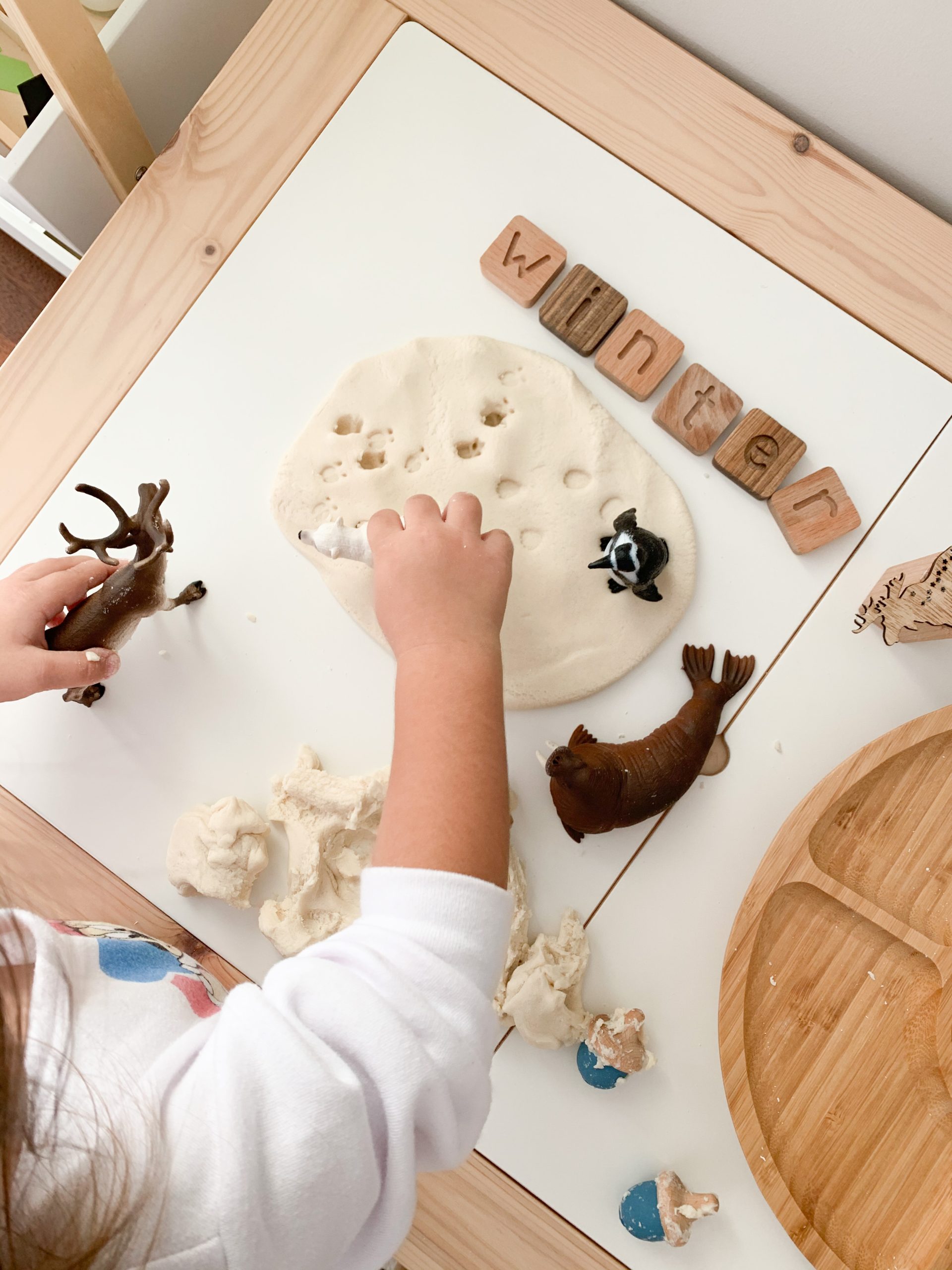 For this activity we made the play dough from scratch and even decided together what to include in the tray. Seasonal play dough trays are the perfect opportunity to talk about all the different aspects of that season in a fun, sensory-rich and relaxing way. It’s a great way to develop language skills and learn some fun facts about the theme to be explored!